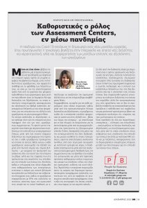 Για το ρόλο των Κέντρων Ανάπτυξης και Αξιολόγησης, εν μέσω της πανδημίας του Covid-19, και τα οφέλη που προσφέρουν στις εταιρείες και τους εργαζόμενους, μιλάει η Ελενα Κατσίνα, Director, People and Culture, της People for Business στο τεύχος Δεκεμβρίου του περιοδικού HR Professional.