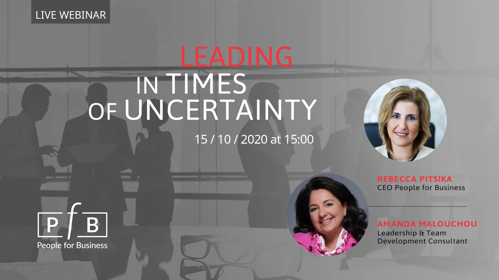“Leading in Times of Uncertainty” είναι το αντικείμενο του webinar, που θα πραγματοποιήσει η εταιρεία Στρατηγικών Λύσεων Υπηρεσιών Ανθρώπινου Δυναμικού People for Business (PfB), την