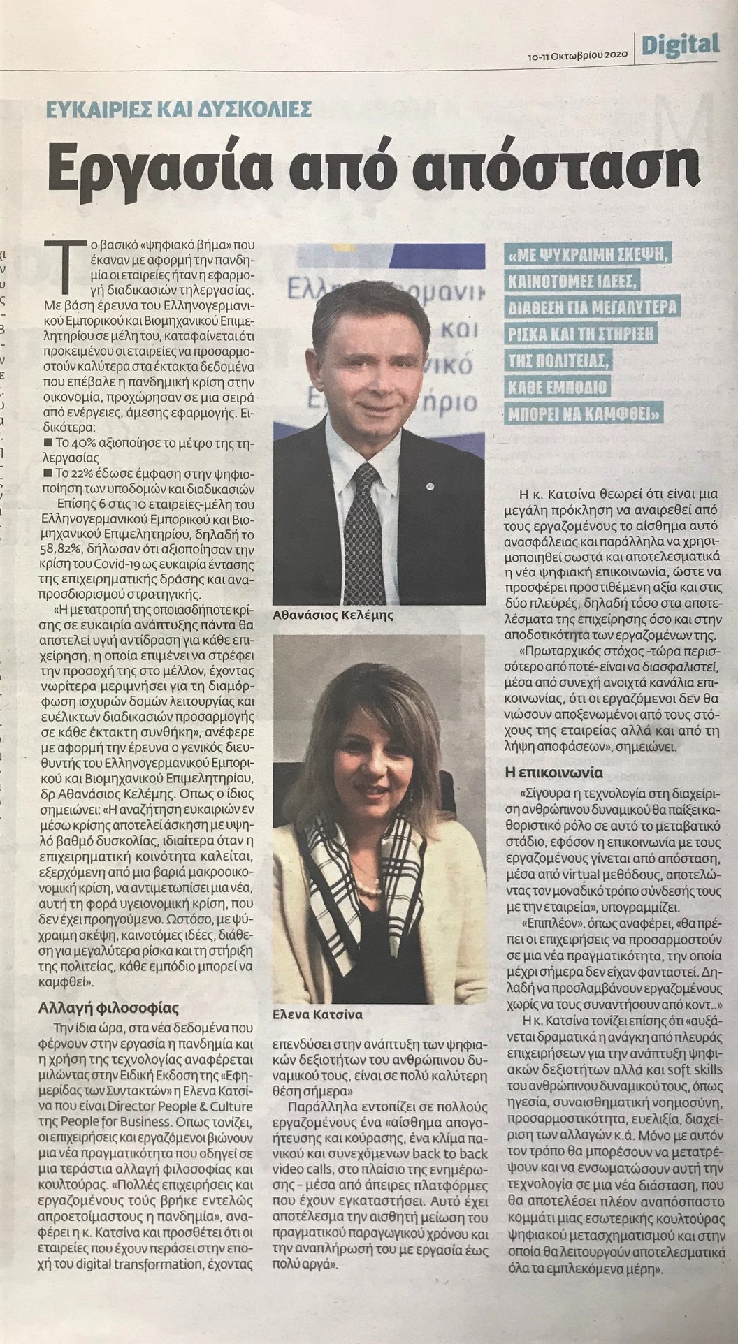 Στην Ειδική Έκδοση “Digital” της Εφημερίδας των Συντακτών -που κυκλοφόρησε το Σαββατοκύριακο 10-11 Οκτωβρίου 2020- μίλησε η Έλενα Κατσίνα Director People & Culture της People